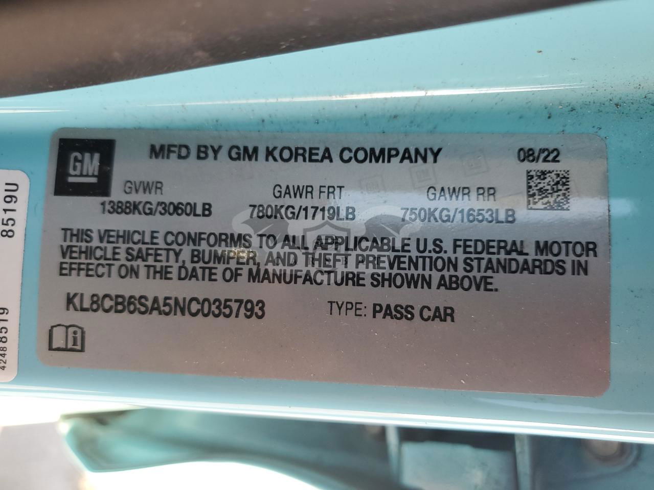 • VIN: KL8CB6SA5NC035793