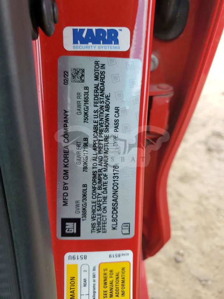 • VIN: KL8CD6SA0NC013176