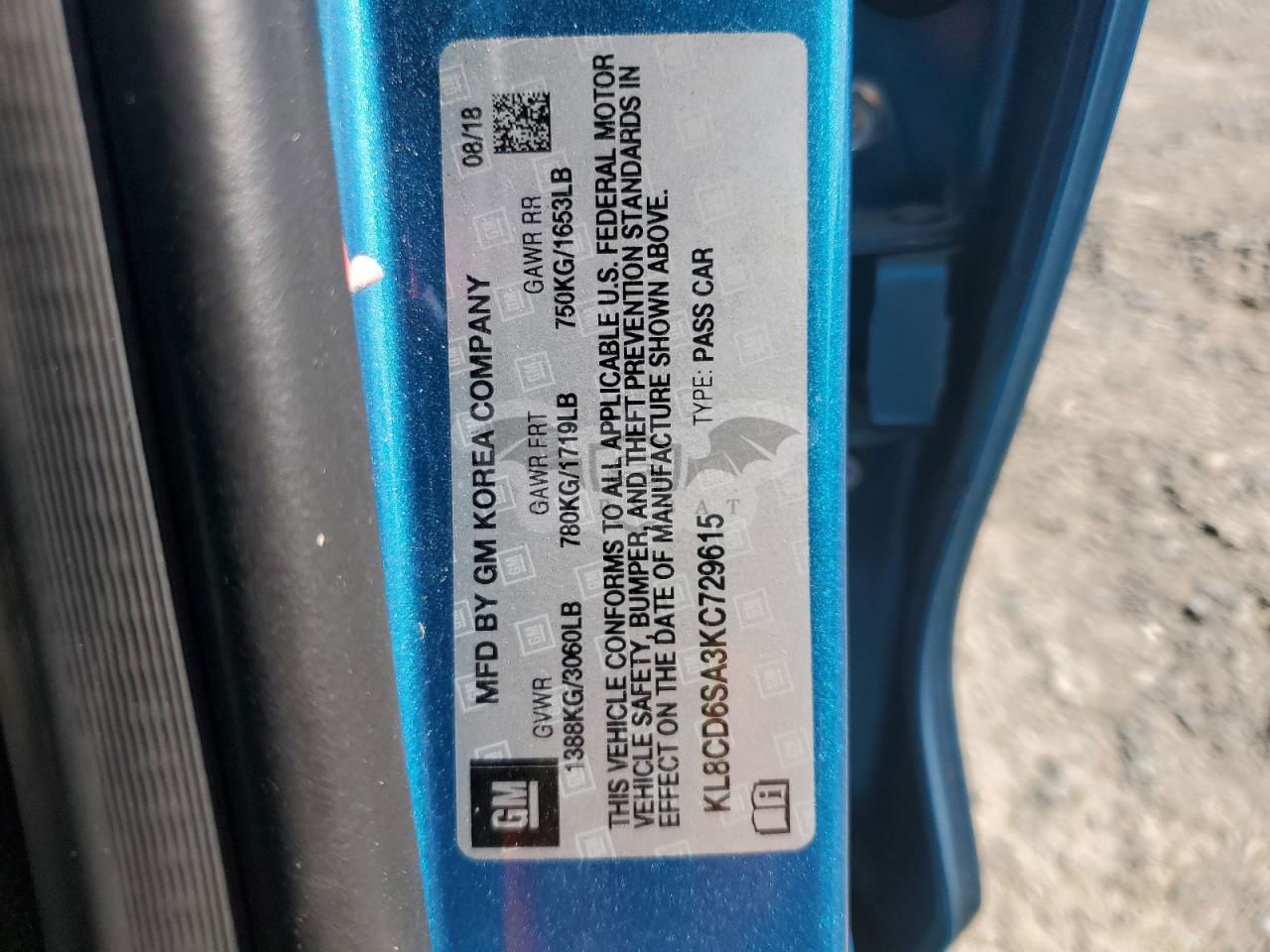 • VIN: KL8CD6SA3KC729615