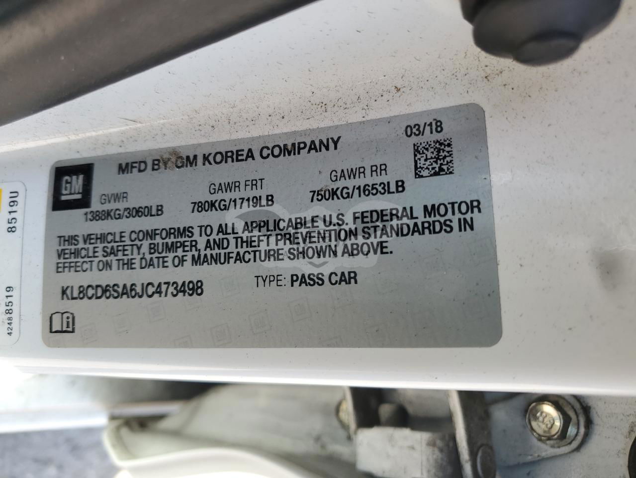 • VIN: KL8CD6SA6JC473498