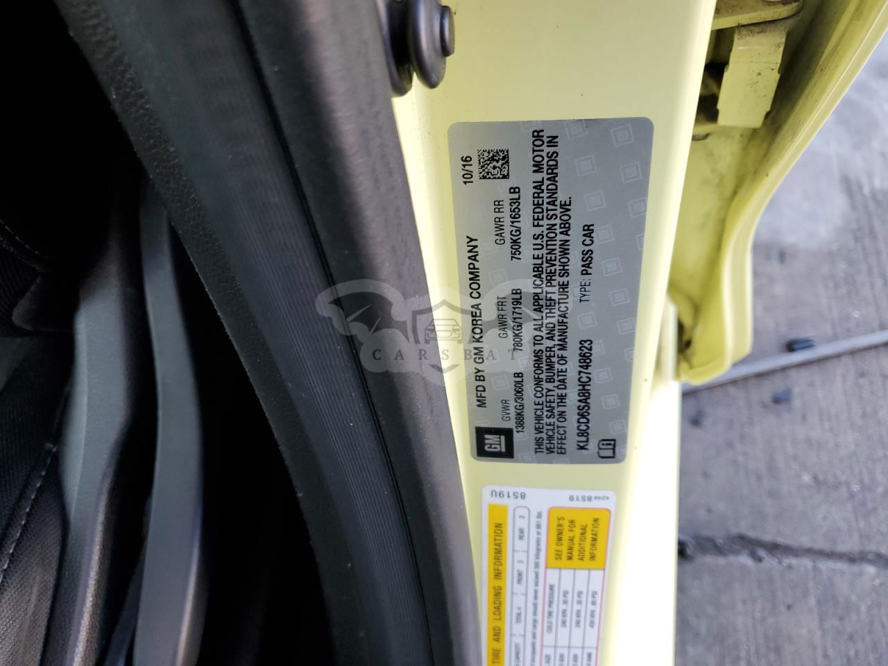 • VIN: KL8CD6SA8HC748623