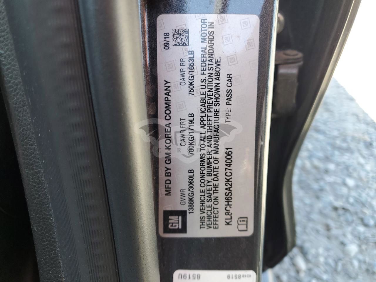• VIN: KL8CH6SA2KC740061