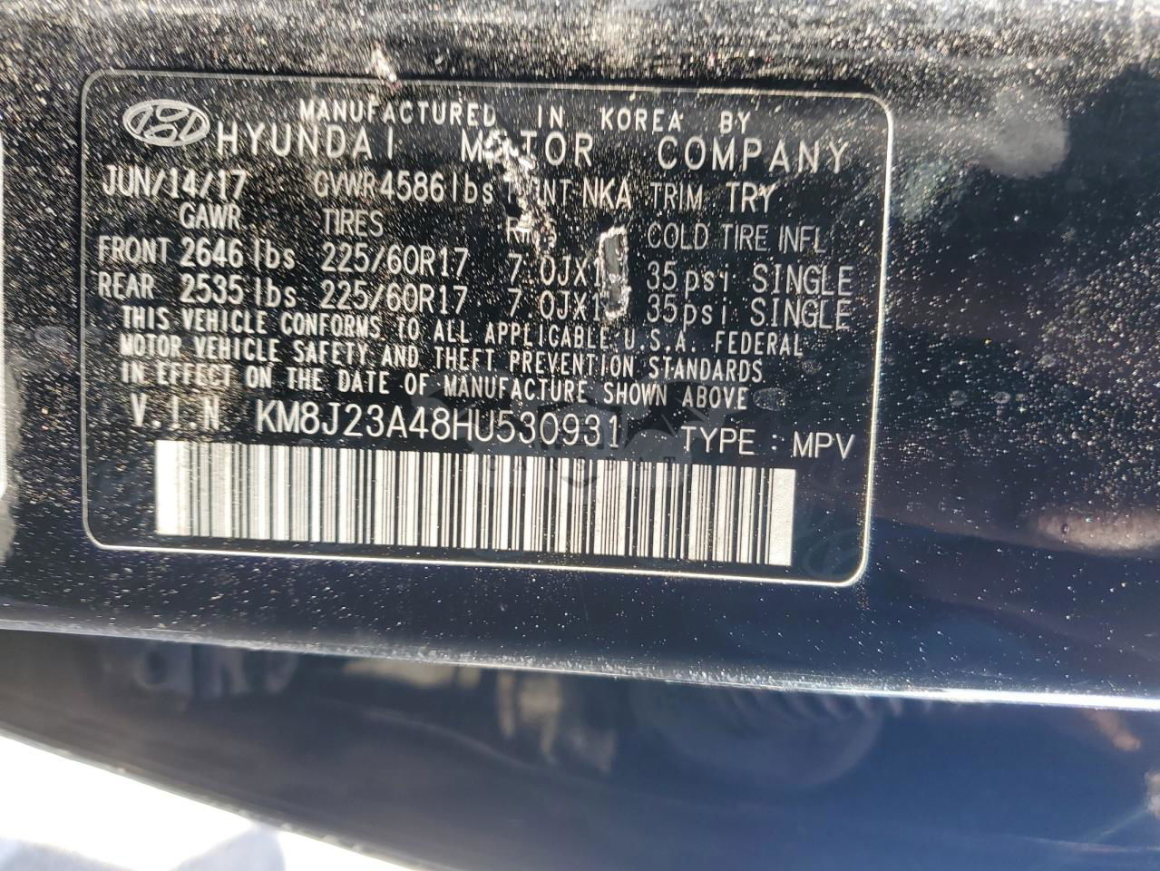 • VIN: KM8J23A48HU530931