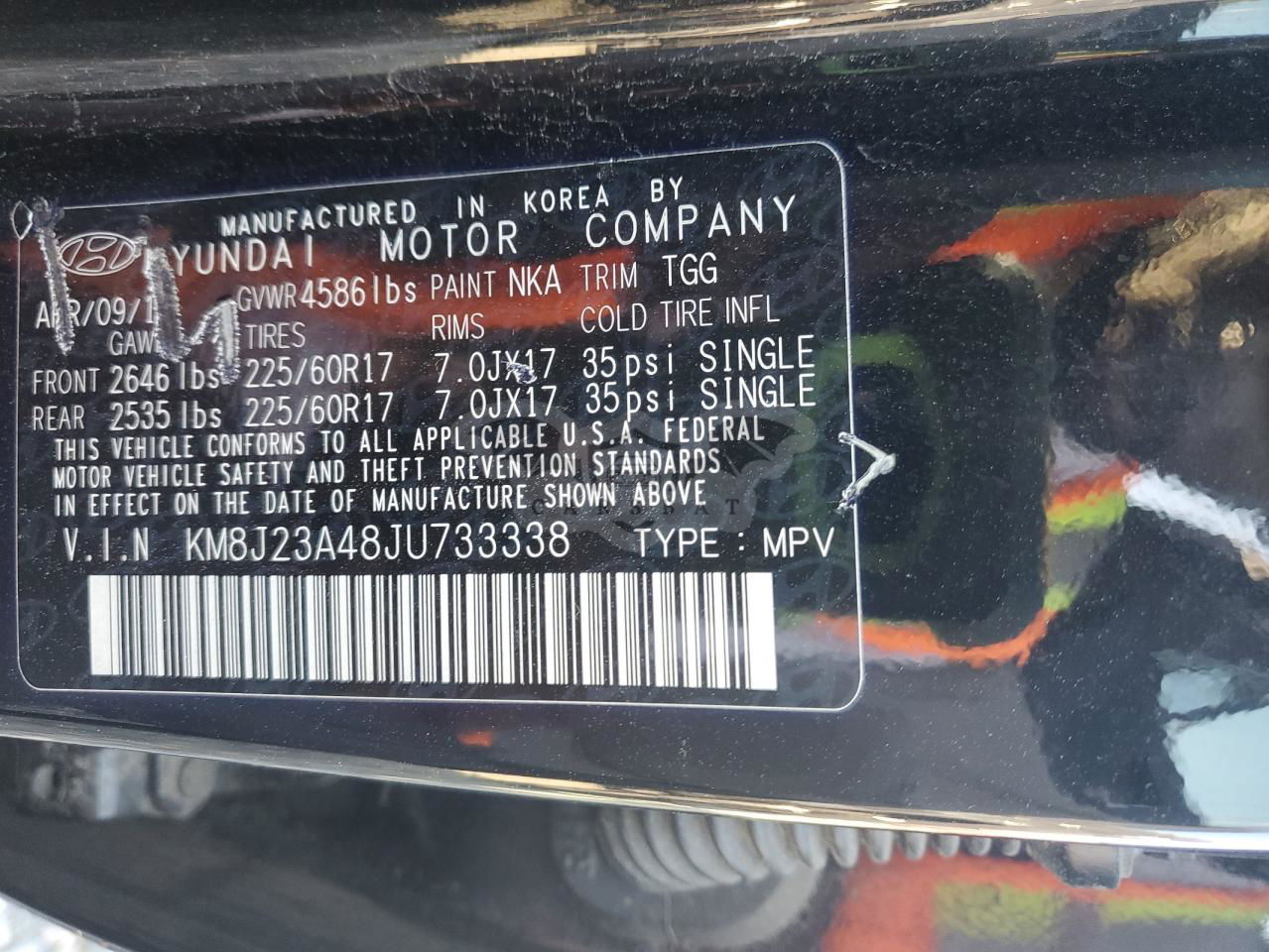 • VIN: KM8J23A48JU733338