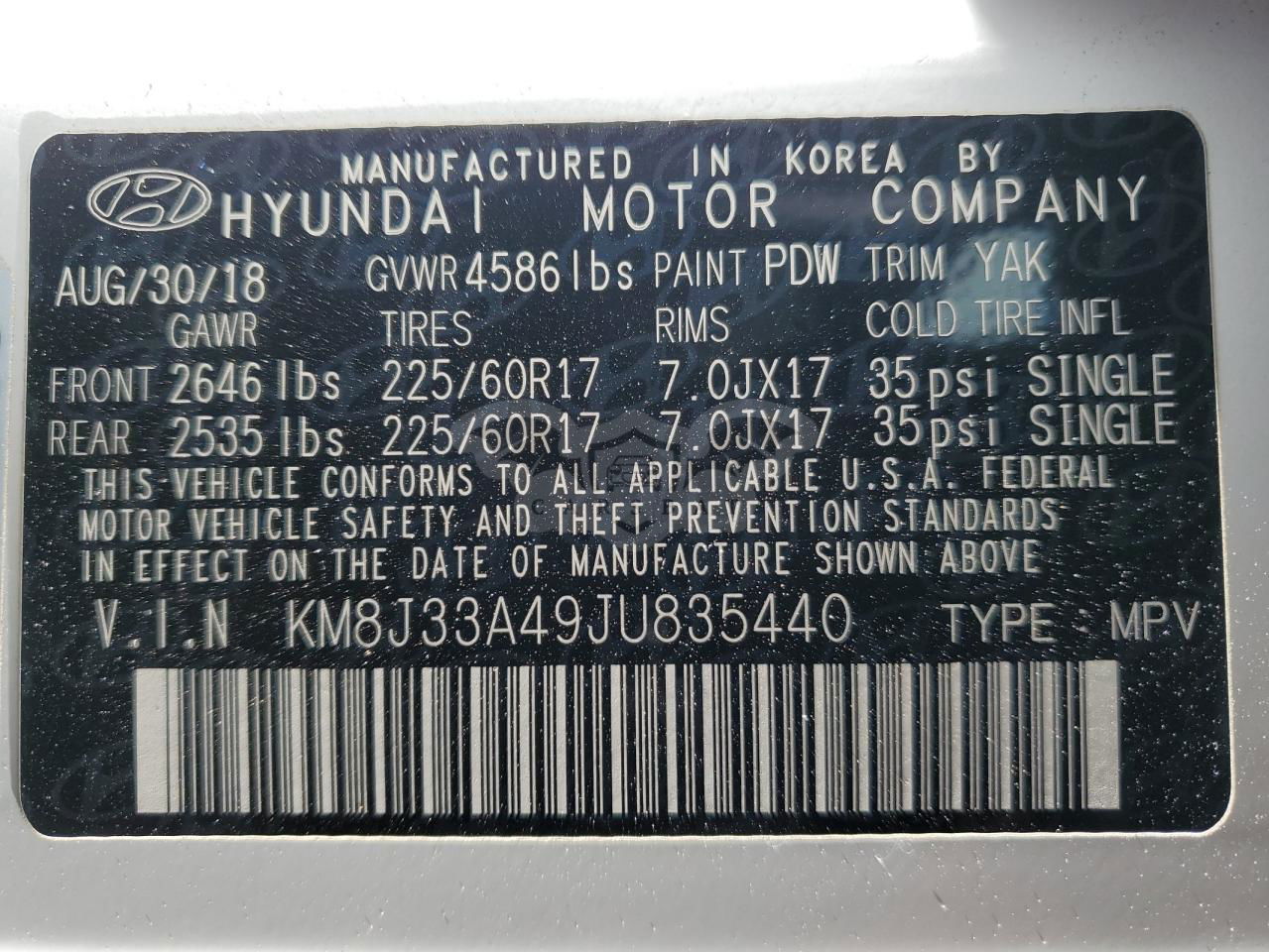 • VIN: KM8J33A49JU835440