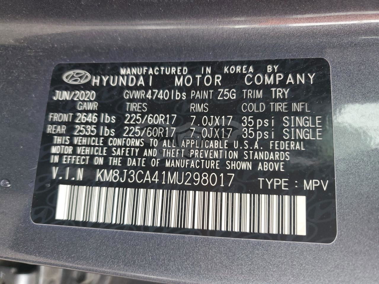 • VIN: KM8J3CA41MU298017