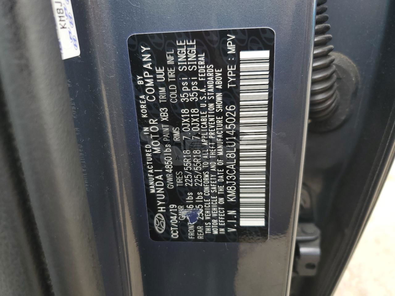 • VIN: KM8J3CAL8LU145026
