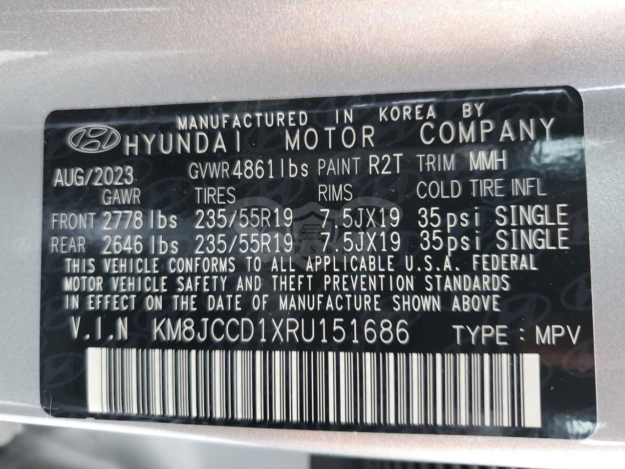 • VIN: KM8JCCD1XRU151686