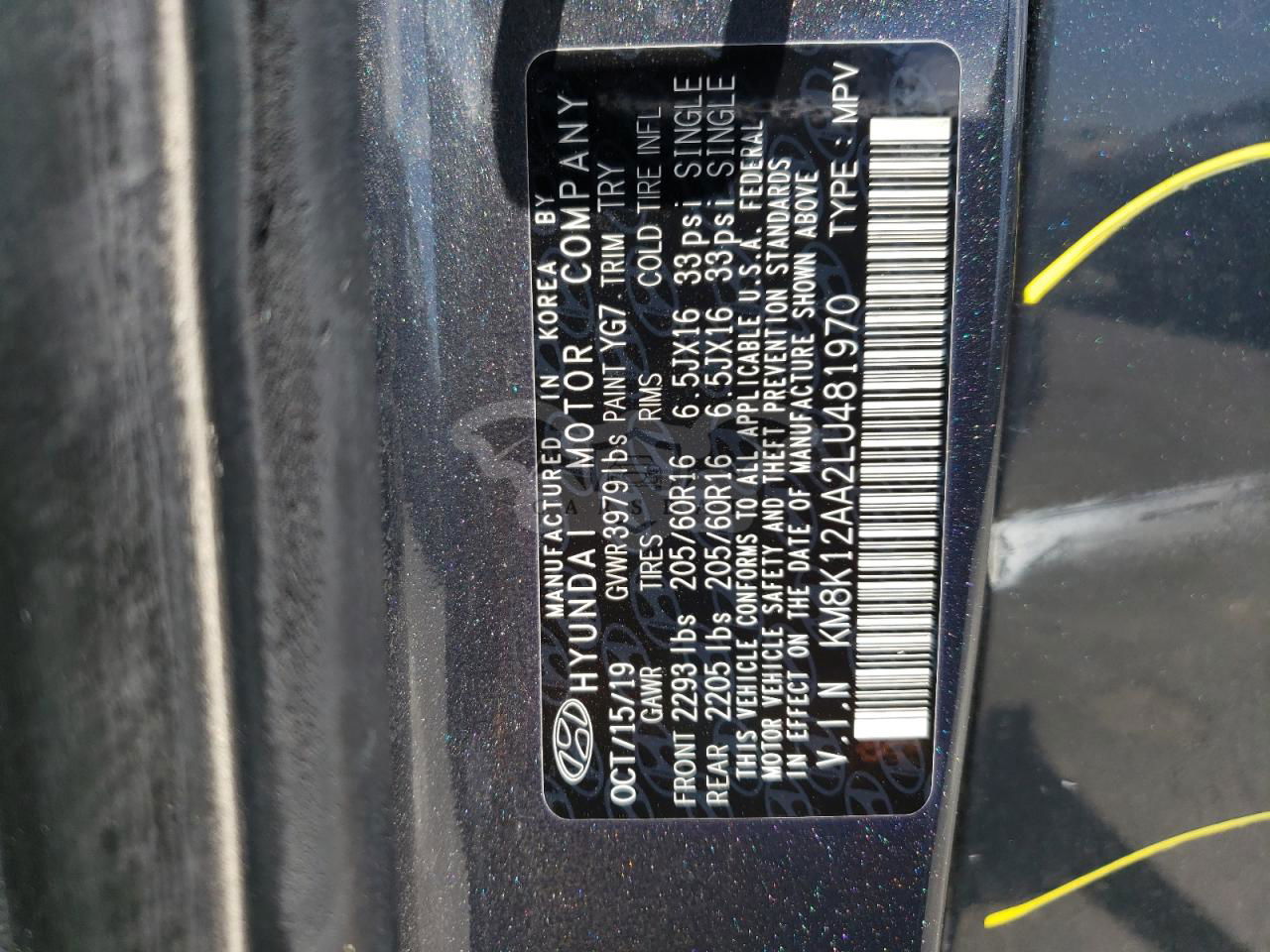 • VIN: KM8K12AA2LU481970