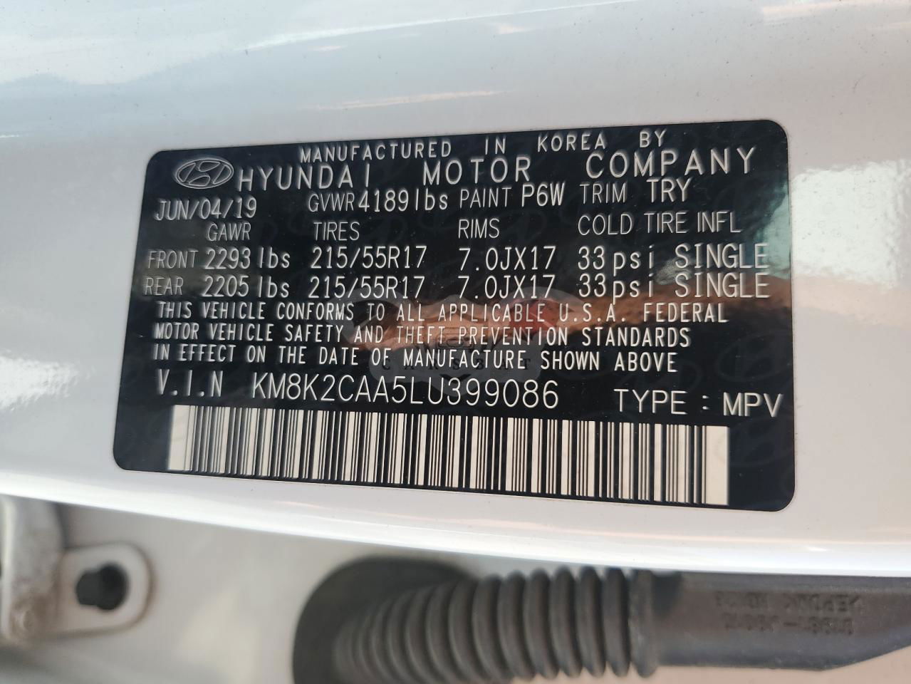• VIN: KM8K2CAA5LU399086