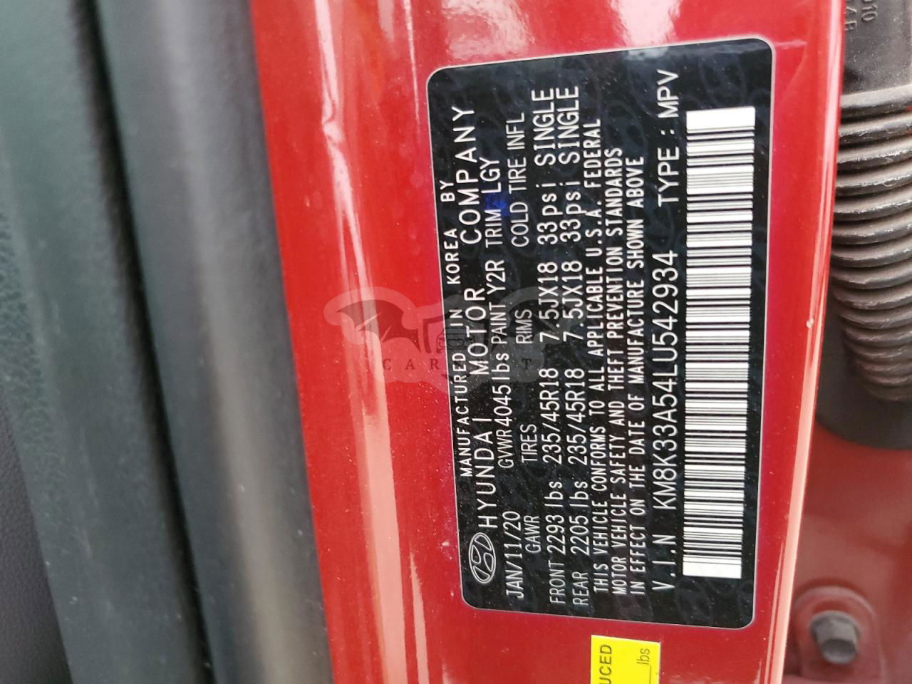 • VIN: KM8K33A54LU542934