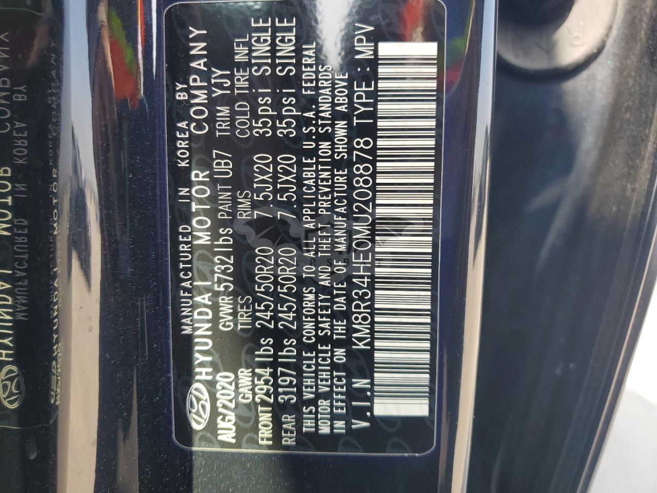 • VIN: KM8R34HE0MU208878