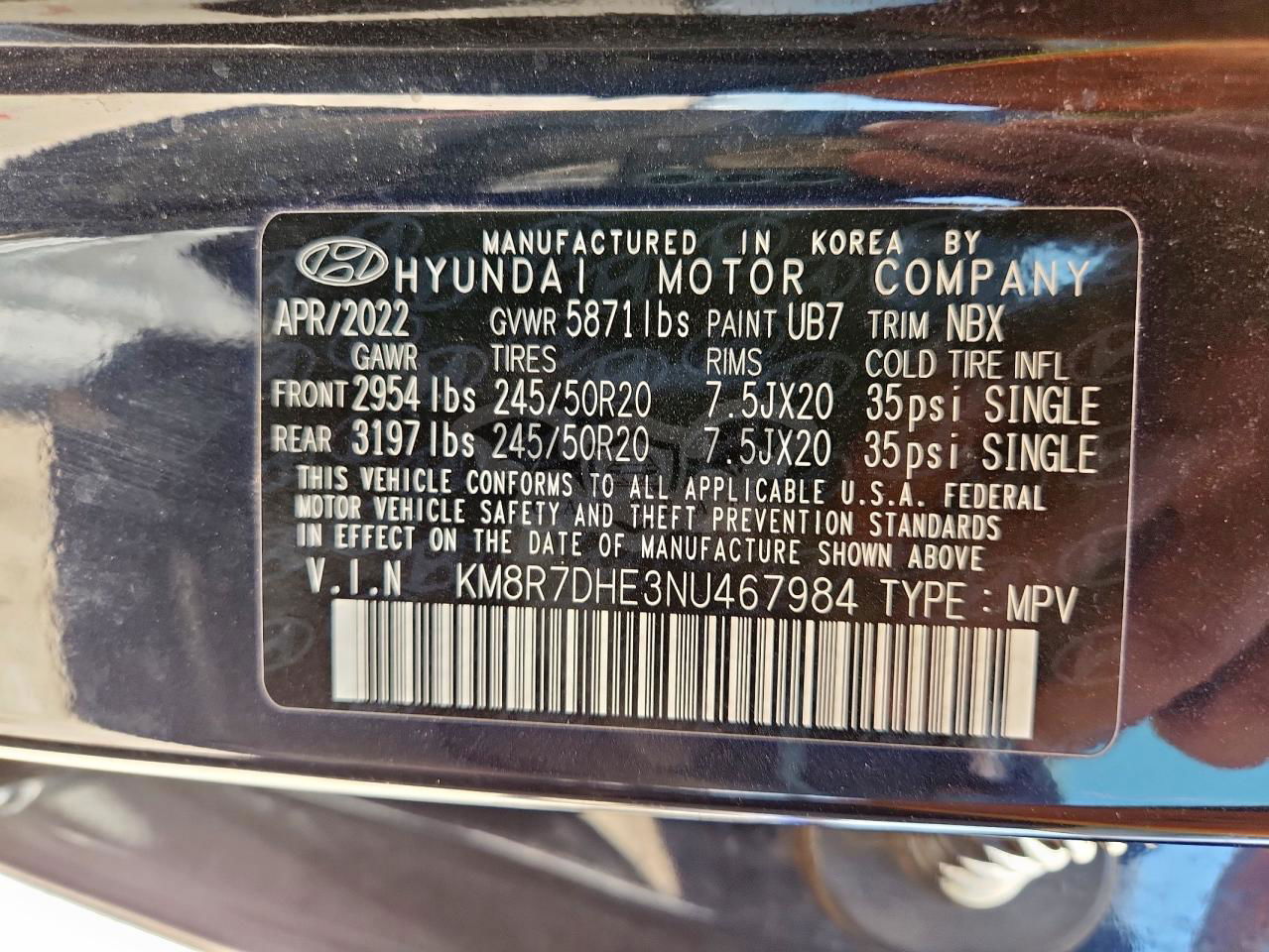 • VIN: KM8R7DHE3NU467984