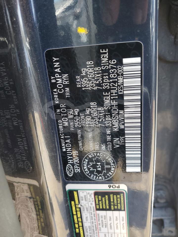 • VIN: KM8SNDHF1HU218376