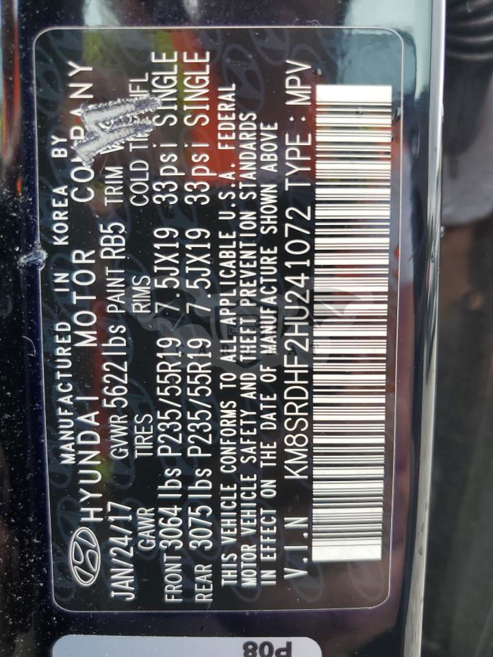• VIN: KM8SRDHF2HU241072