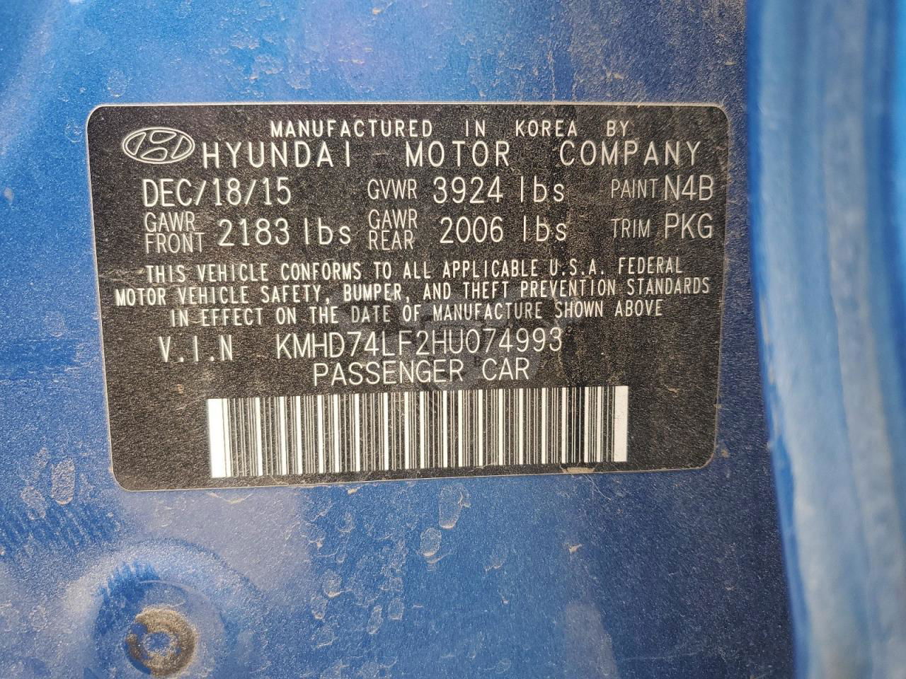 • VIN: KMHD74LF2HU074993