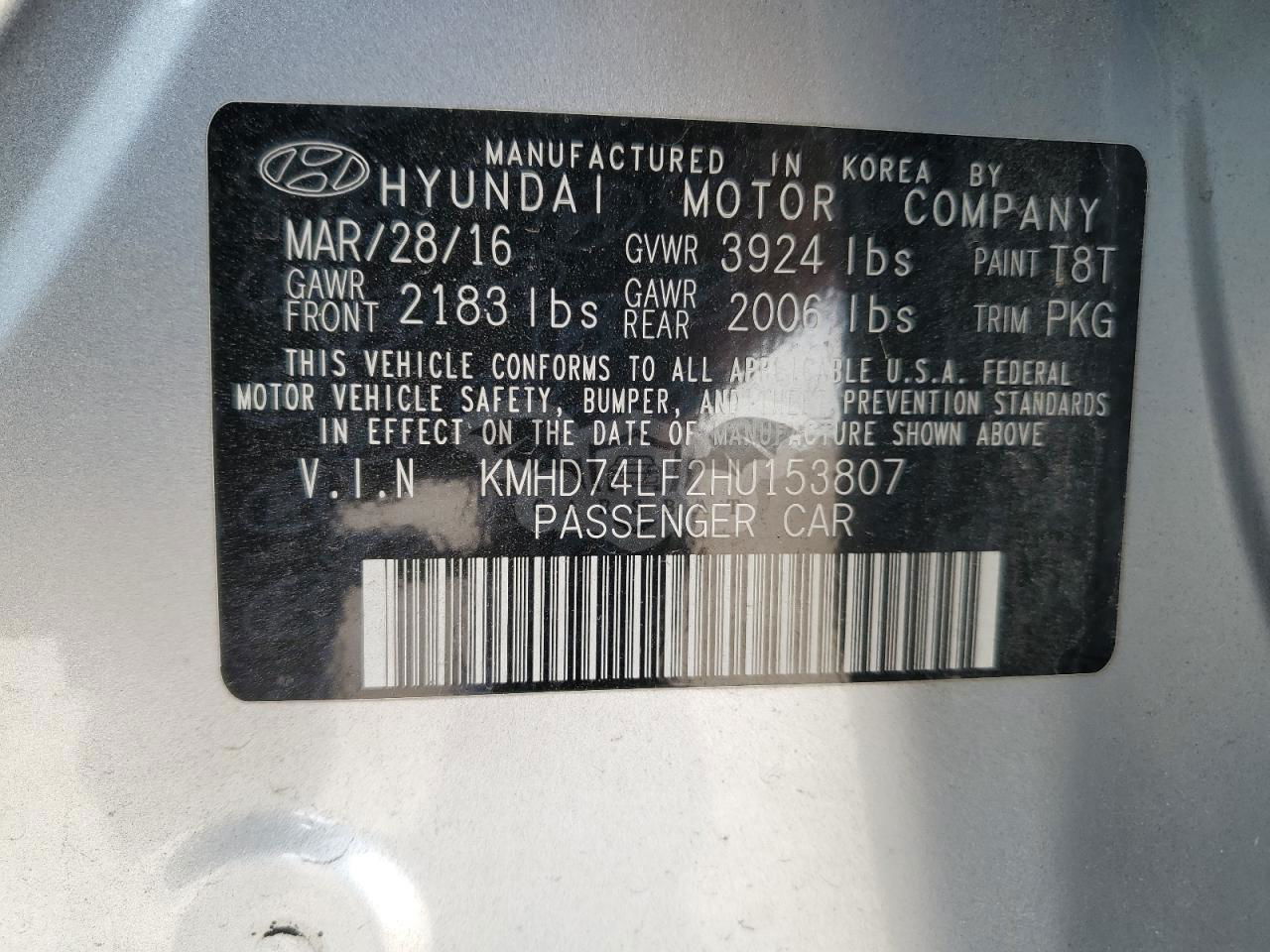 • VIN: KMHD74LF2HU153807
