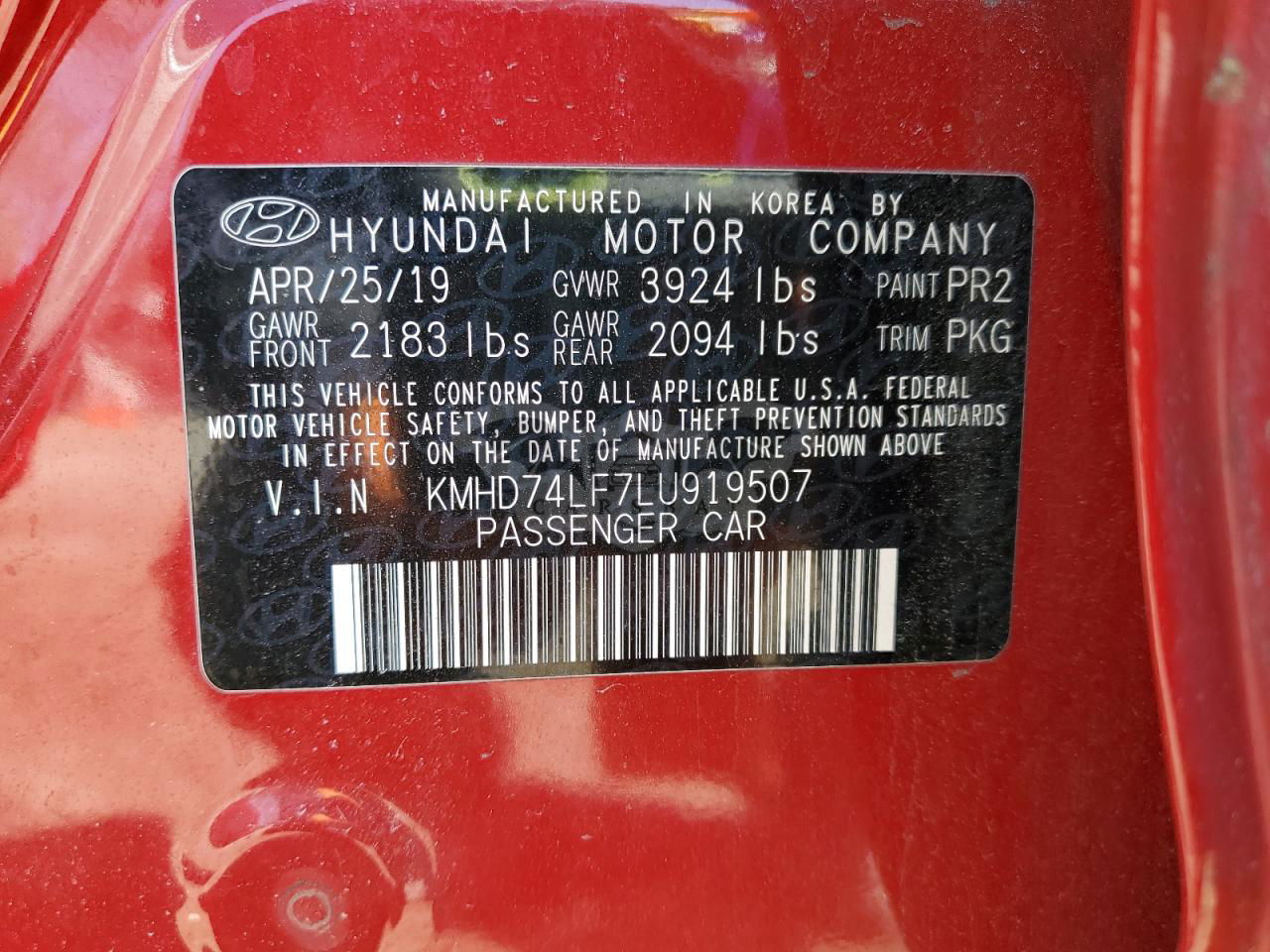 • VIN: KMHD74LF7LU919507