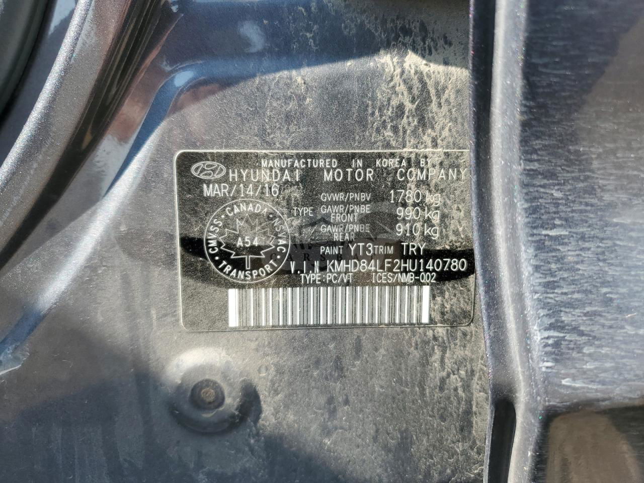 • VIN: KMHD84LF2HU140780