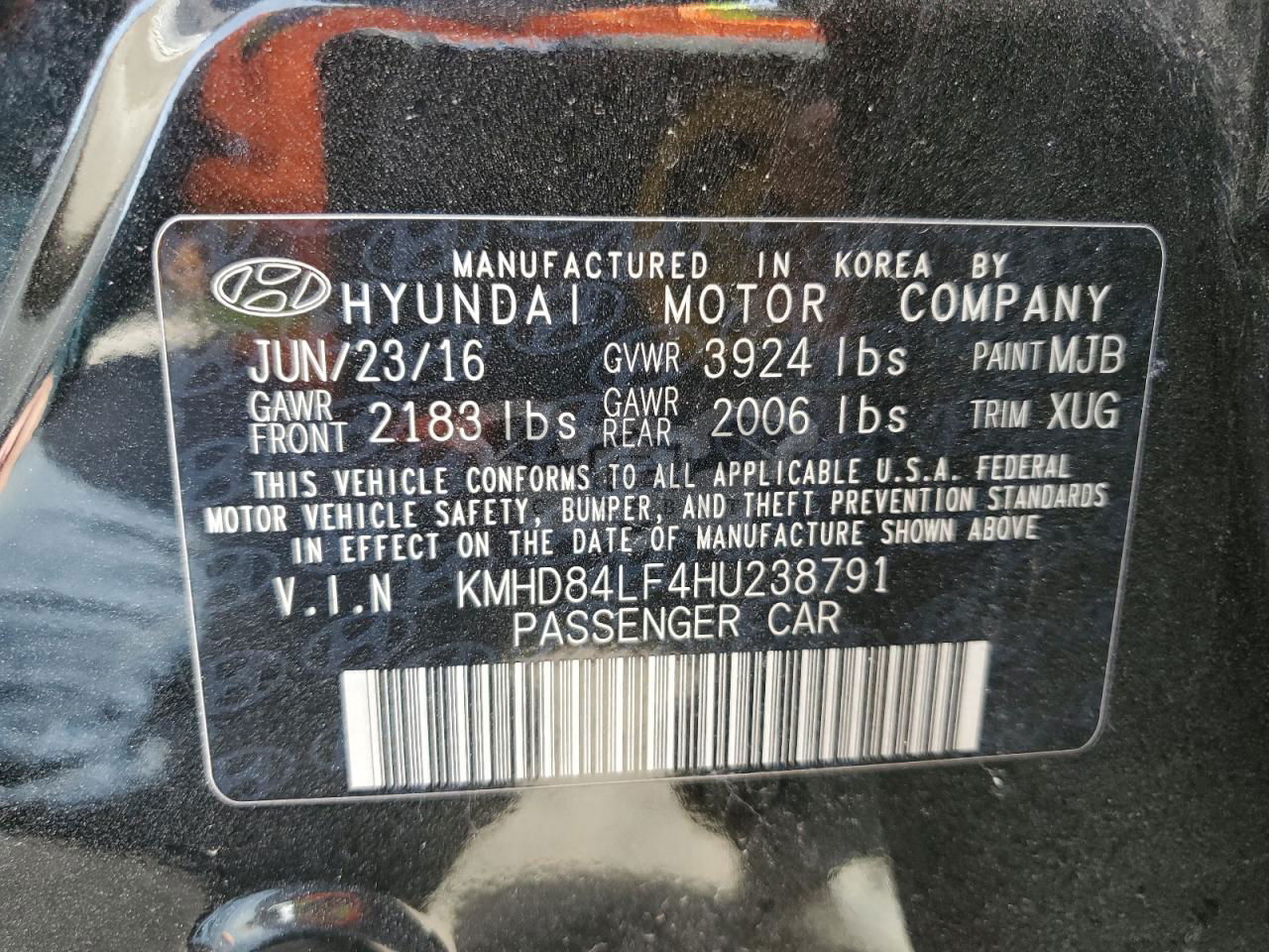 • VIN: KMHD84LF4HU238791