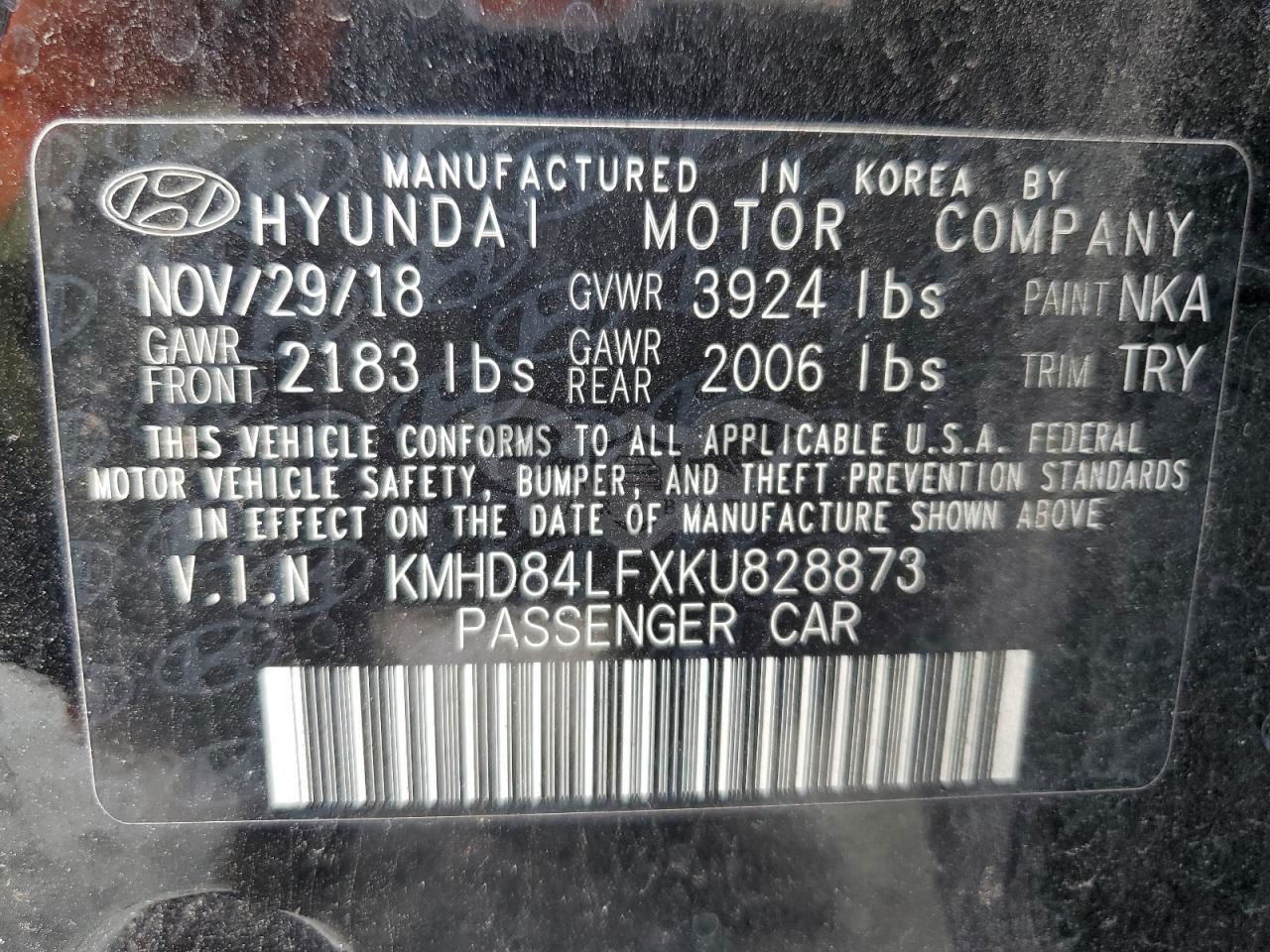 • VIN: KMHD84LFXKU828873