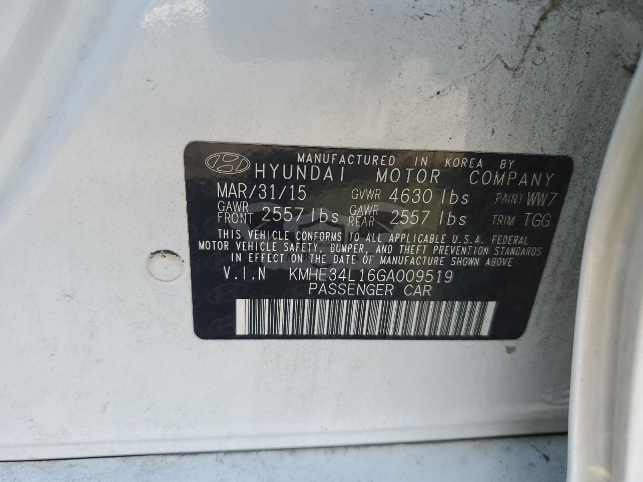 • VIN: KMHE34L16GA009519