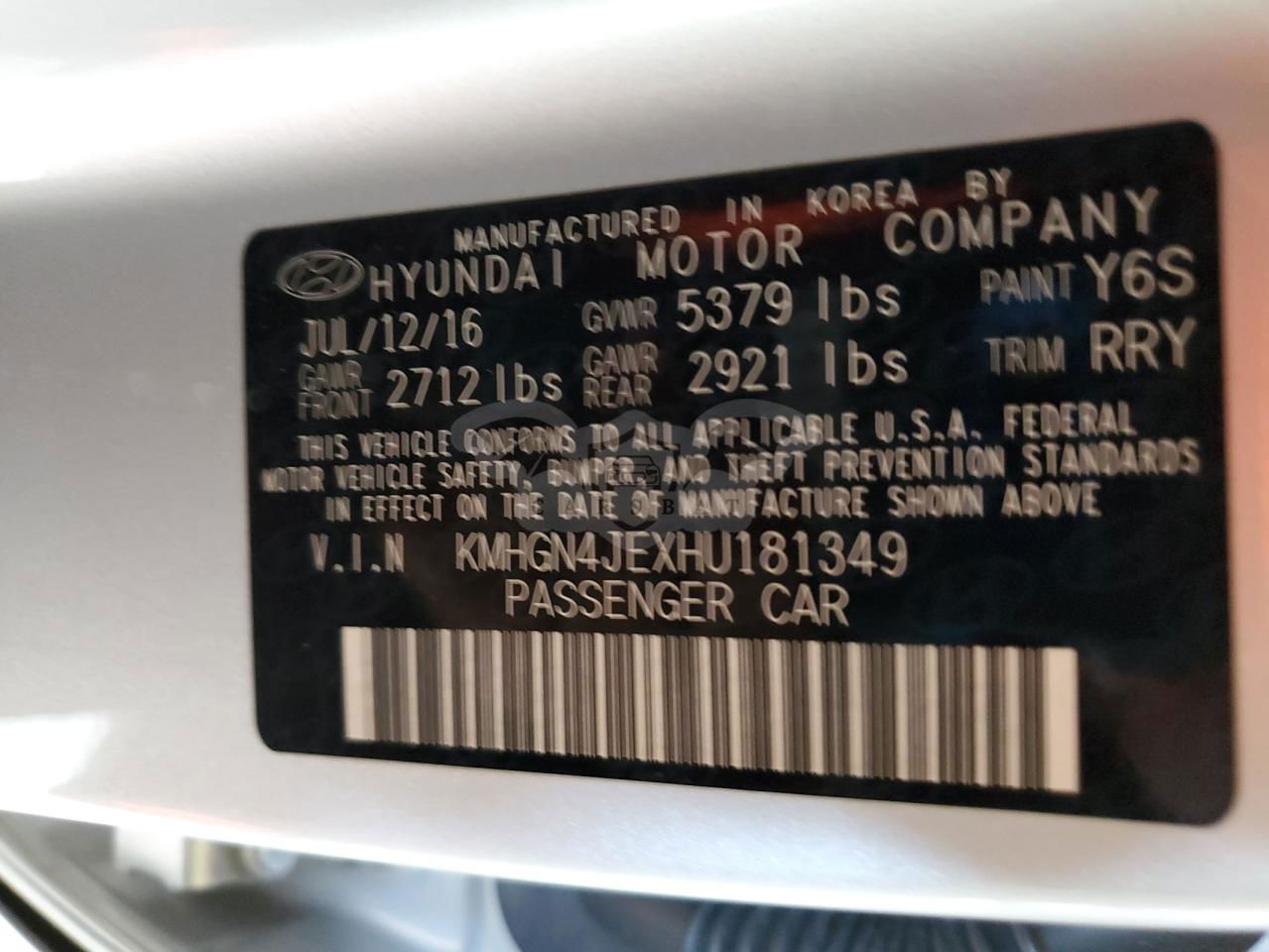 • VIN: KMHGN4JEXHU181349