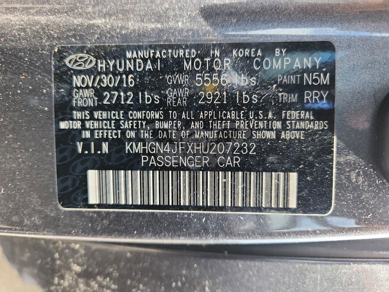 • VIN: KMHGN4JFXHU207232
