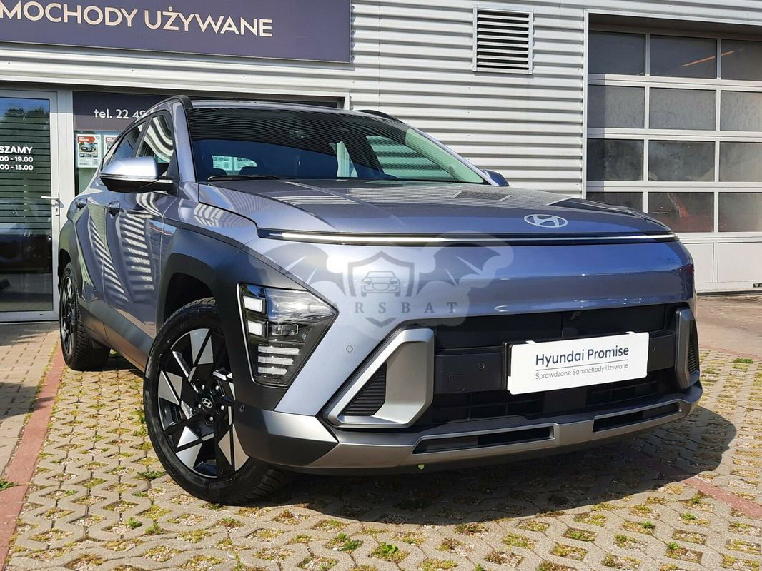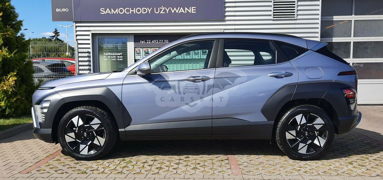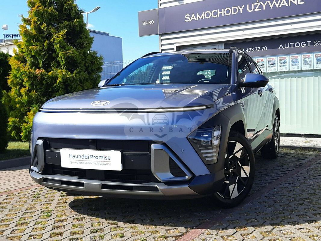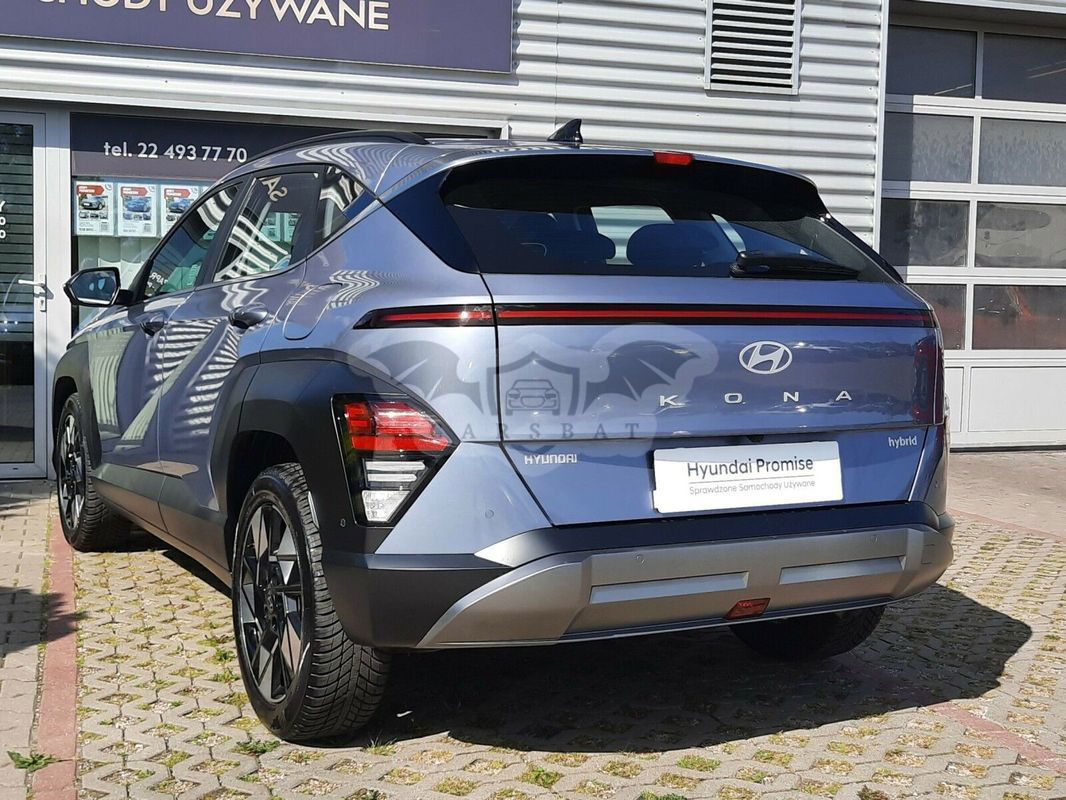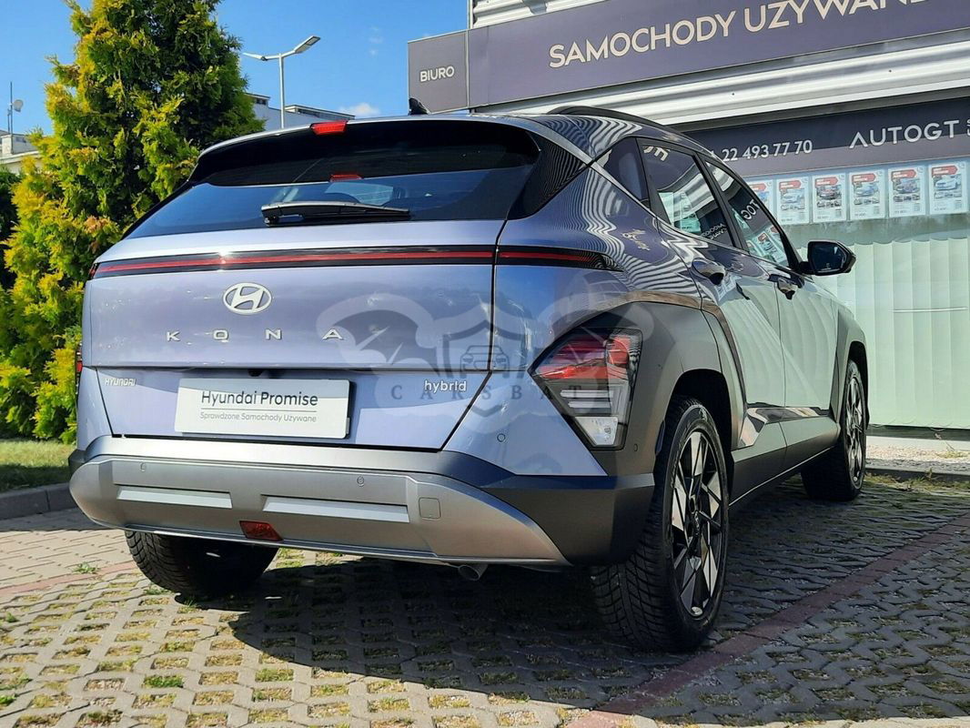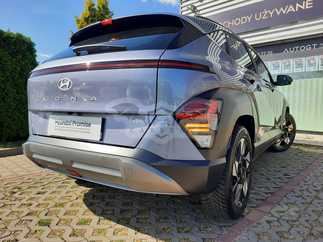 Niebieski Hyundai Kona II 1.6 GDI Hybrid Executive DCT 2024 roku | Hybrydowy