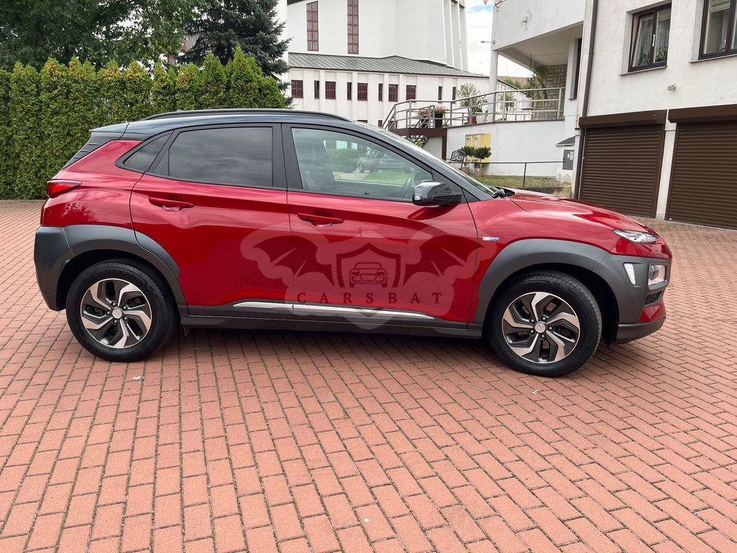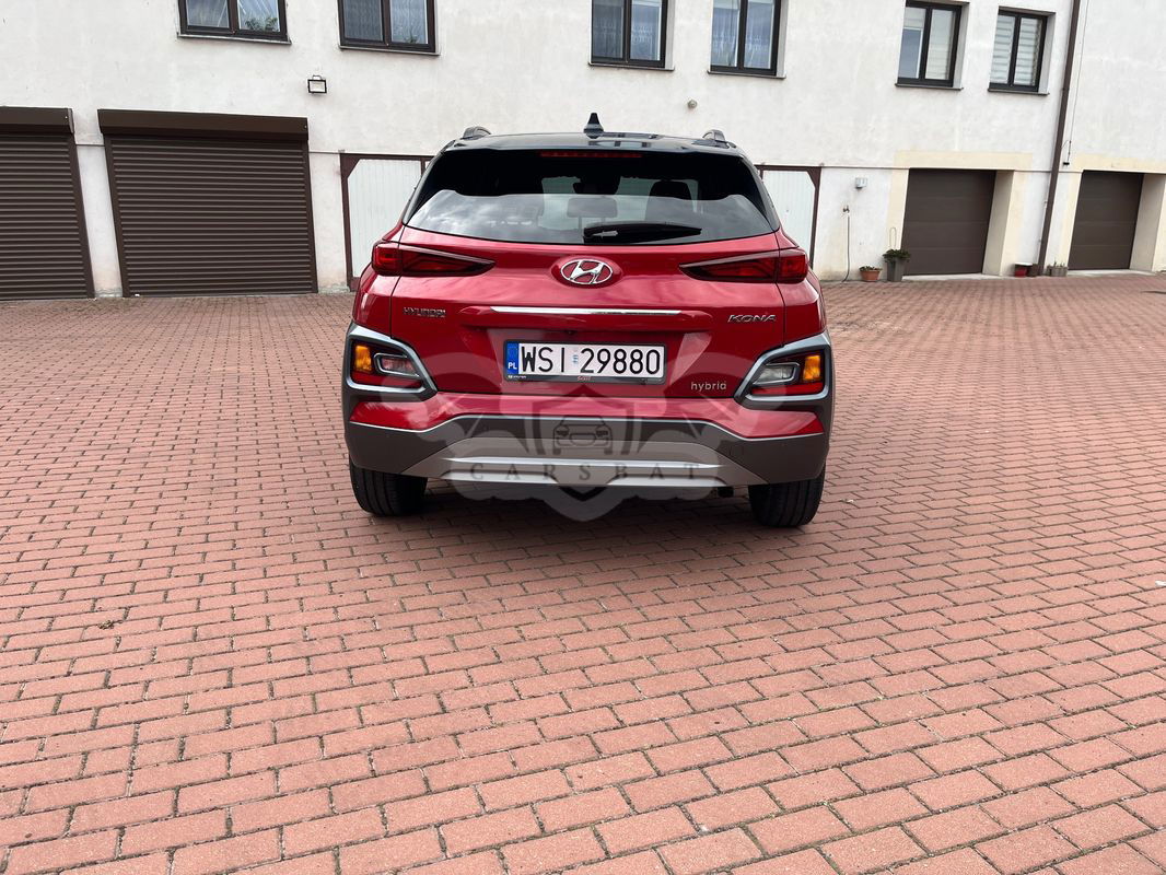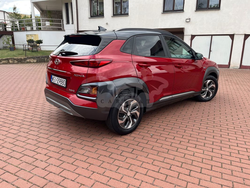 Czerwony Hyundai Kona I 1.6 GDI Hybrid Premium DCT 2020 roku | Hybrydowy