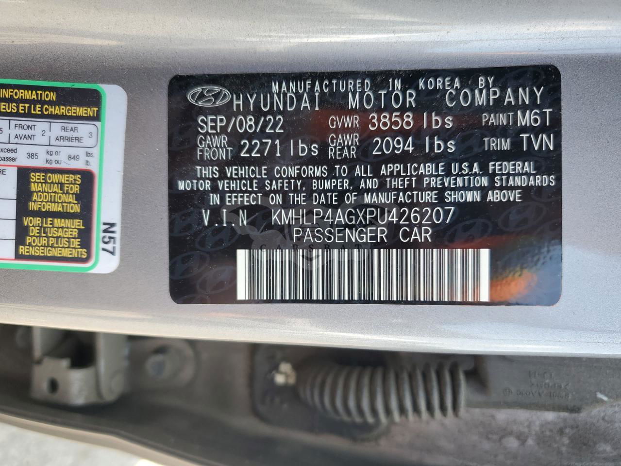 • VIN: KMHLP4AGXPU426207