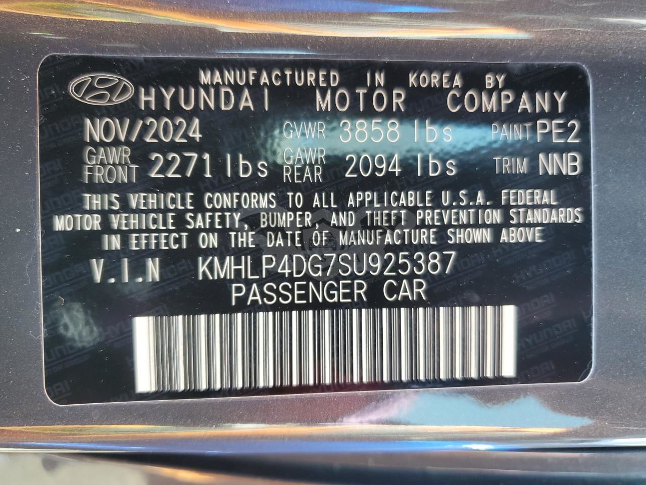 • VIN: KMHLP4DG7SU925387