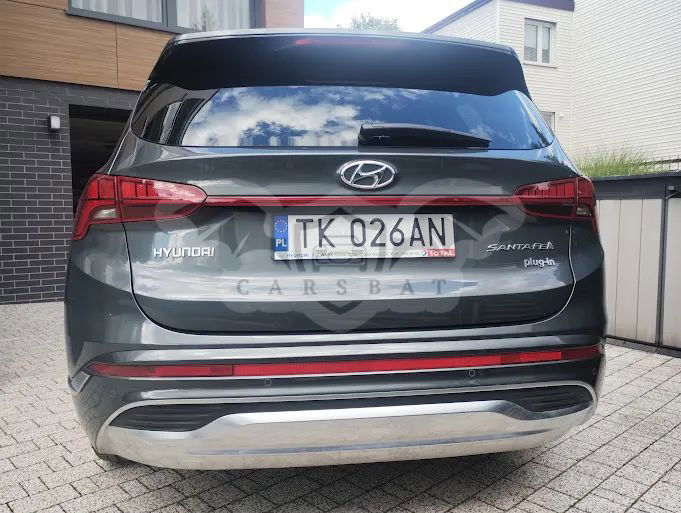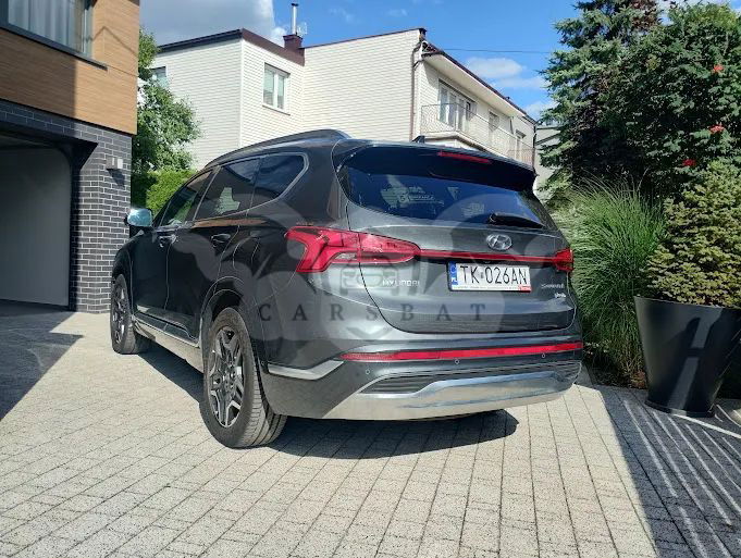 Szary Hyundai Santa Fe IV 2021 roku | Hybrydowy