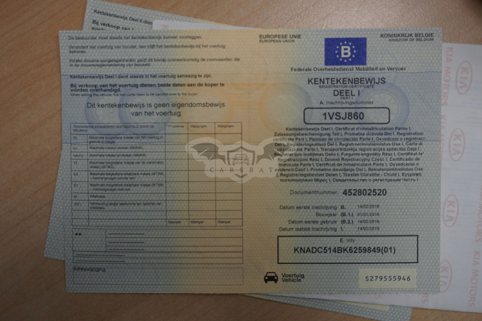 • VIN: KNADC514BK6259849