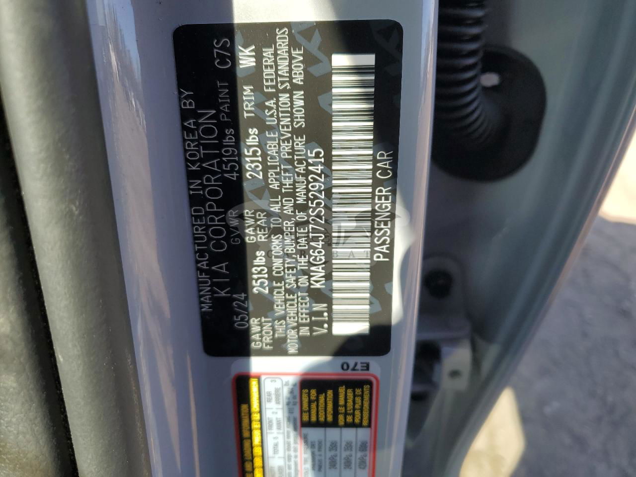 • VIN: KNAG64J72S5292415