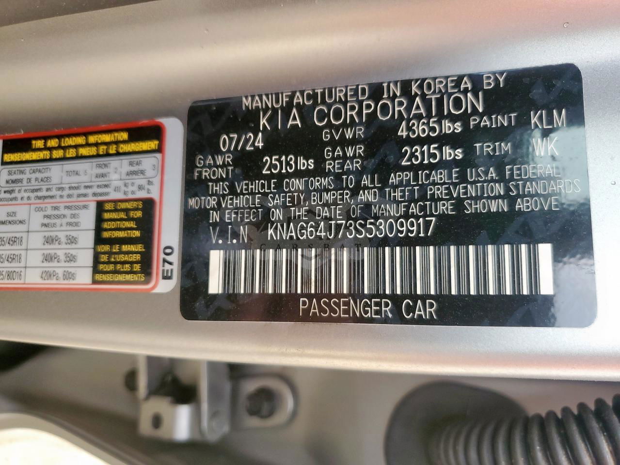 • VIN: KNAG64J73S5309917