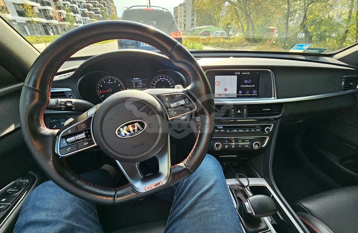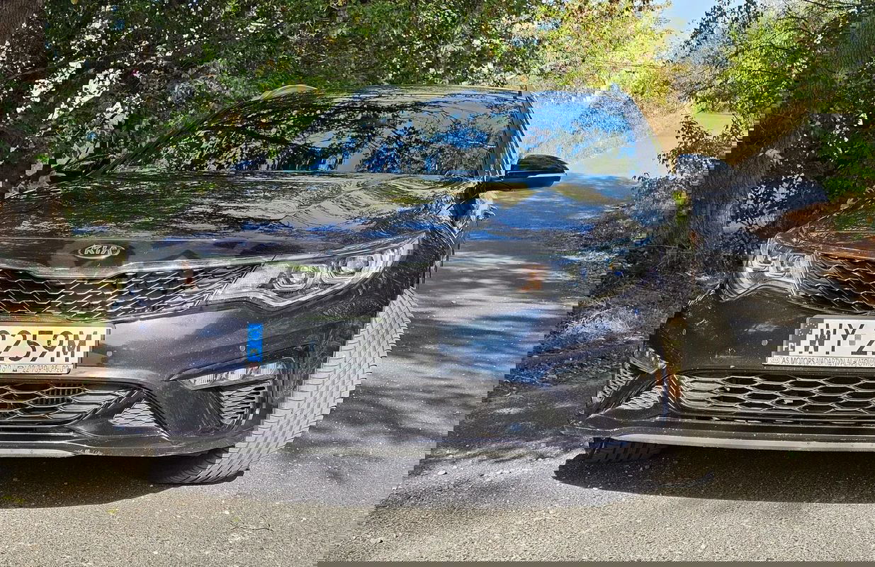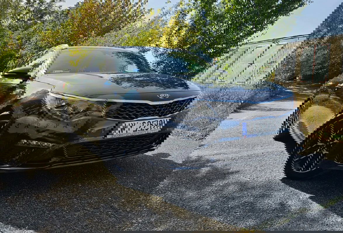 Ciemnoniebieski Kia Optima IV 1.6 T-GDI GT Line DCT 2019 roku | Benzyna