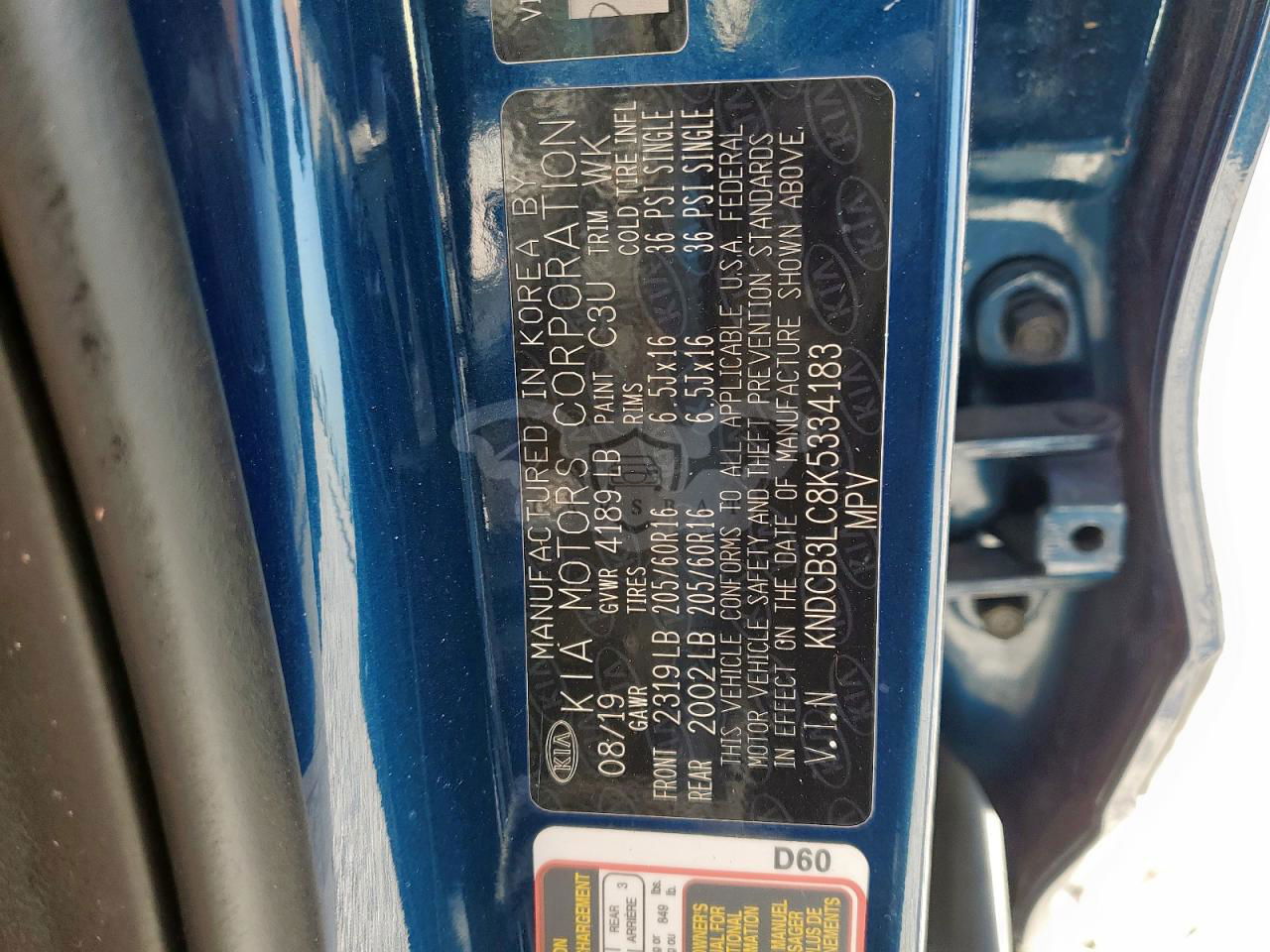 • VIN: KNDCB3LC8K5334183