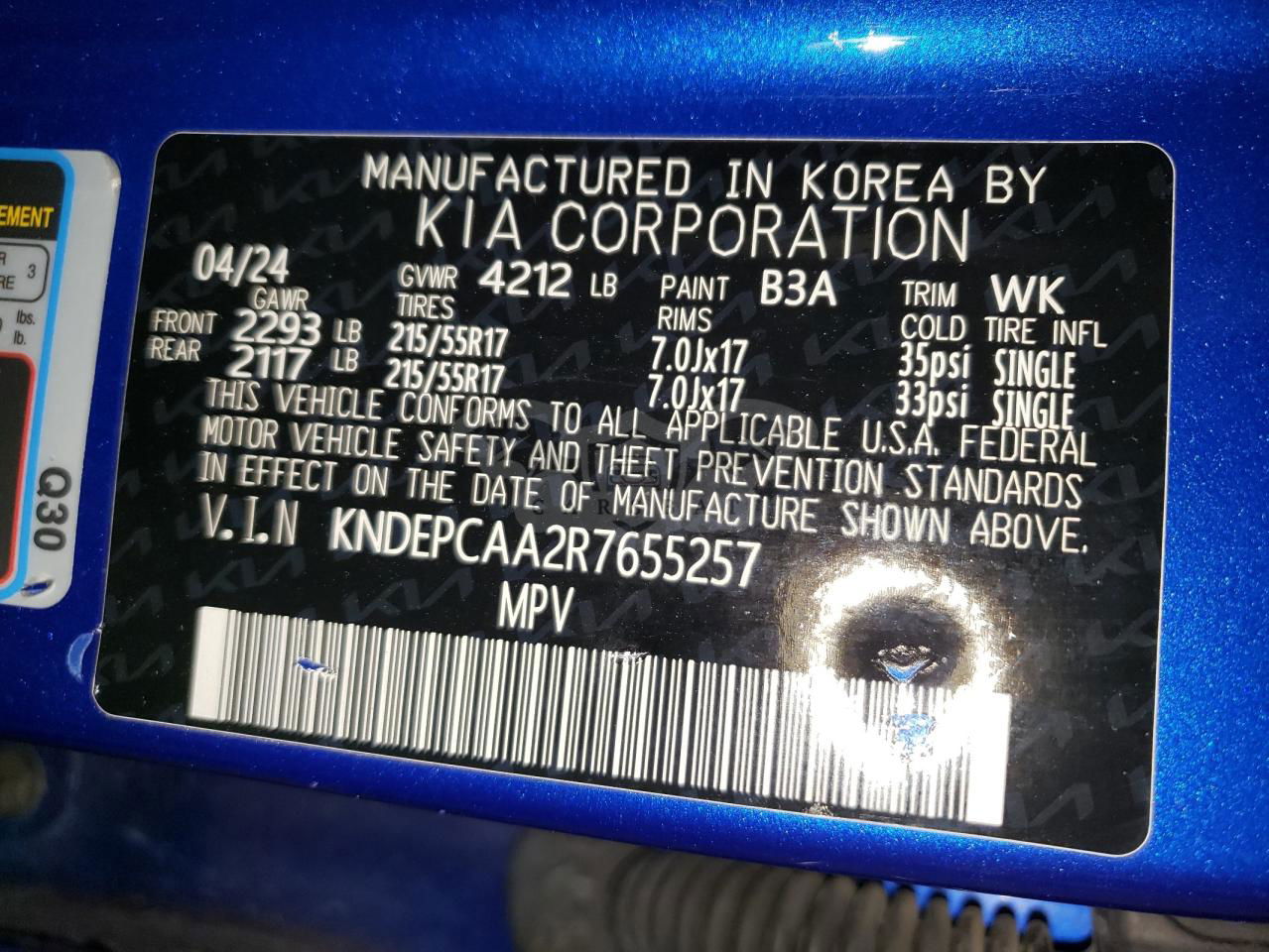• VIN: KNDEPCAA2R7655257