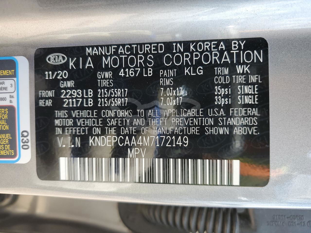 • VIN: KNDEPCAA4M7172149