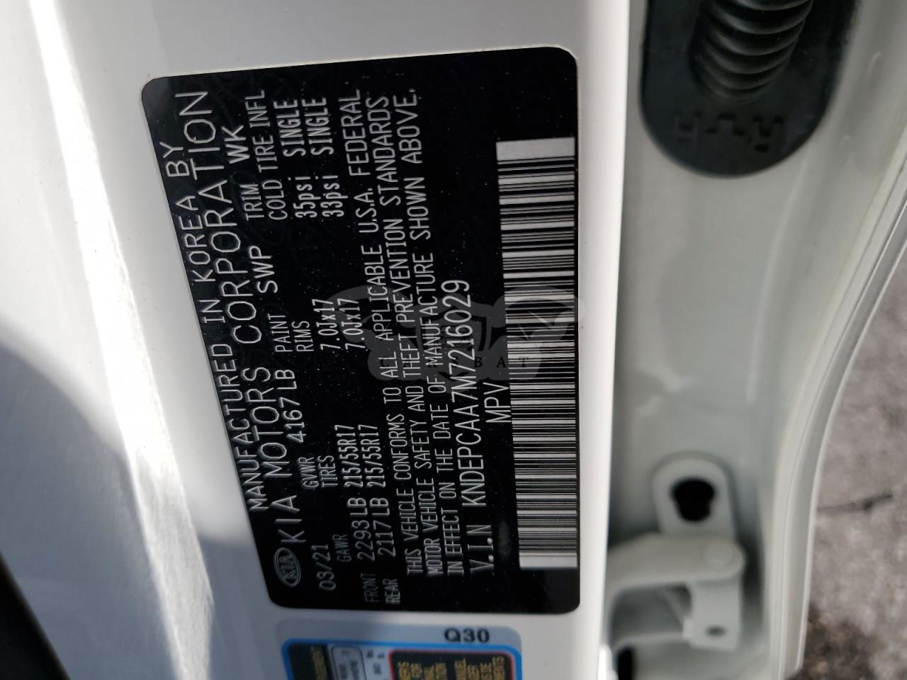 • VIN: KNDEPCAA7M7216029