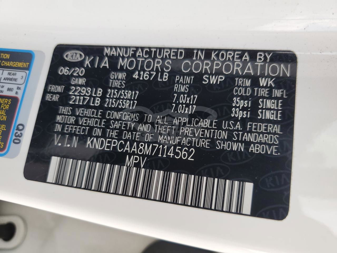 • VIN: KNDEPCAA8M7114562