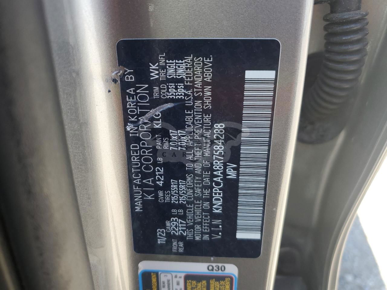 • VIN: KNDEPCAA8R7584288