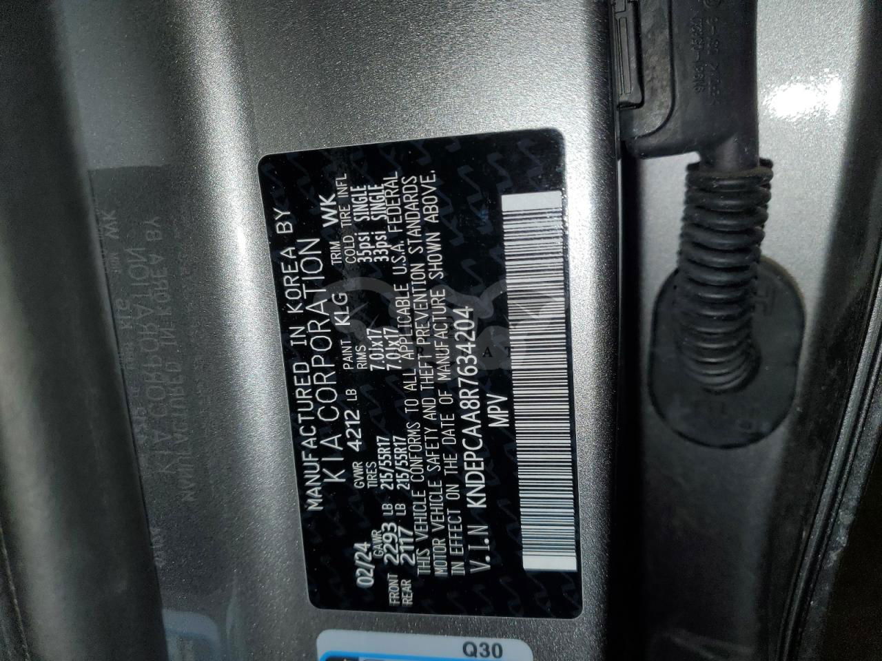 • VIN: KNDEPCAA8R7634204