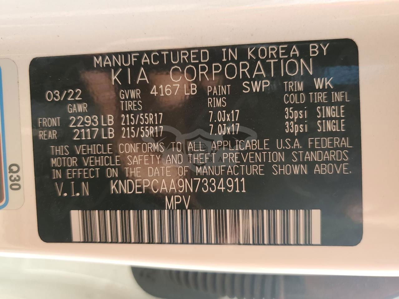 • VIN: KNDEPCAA9N7334911
