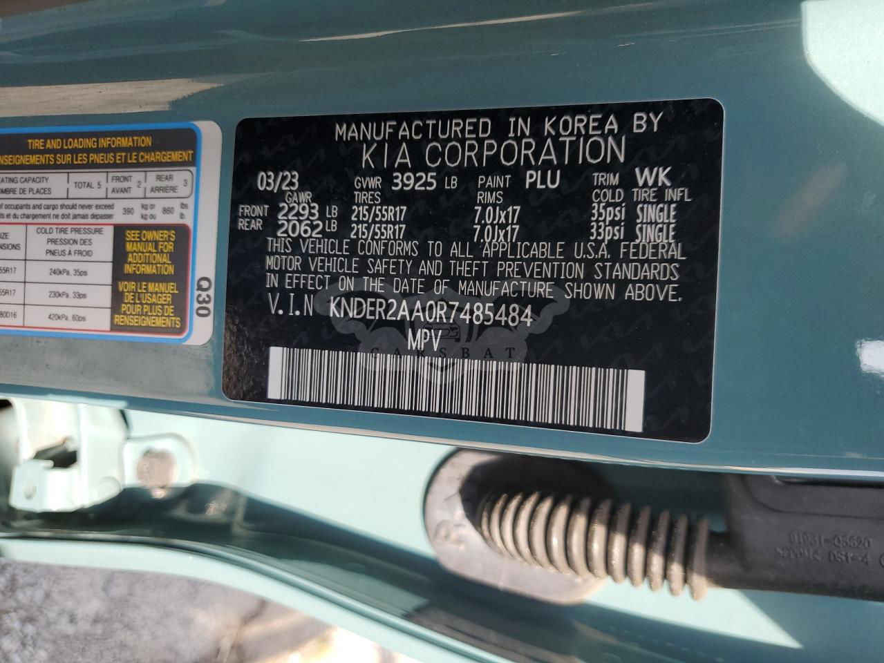 • VIN: KNDER2AA0R7485484