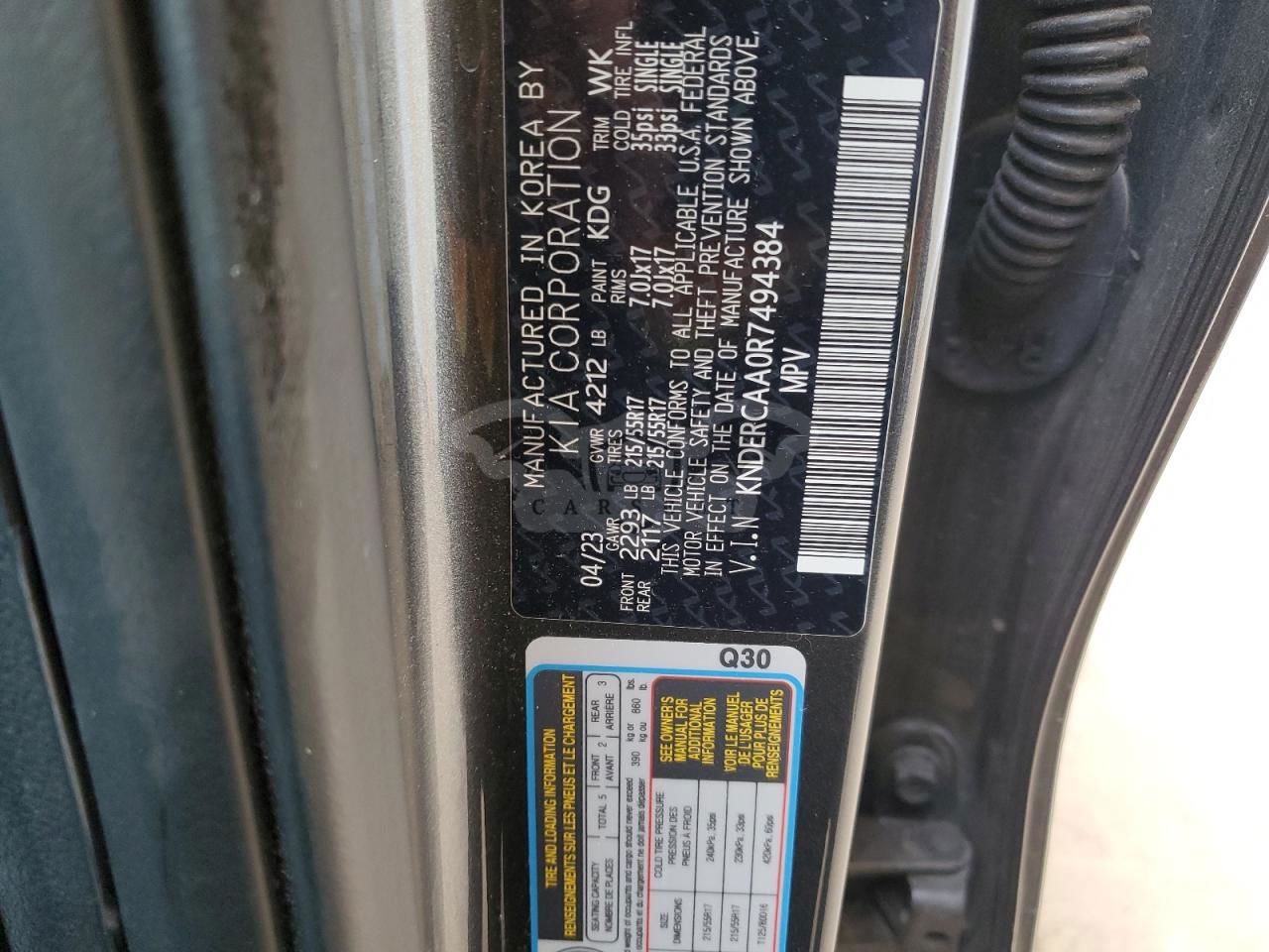 • VIN: KNDERCAA0R7494384