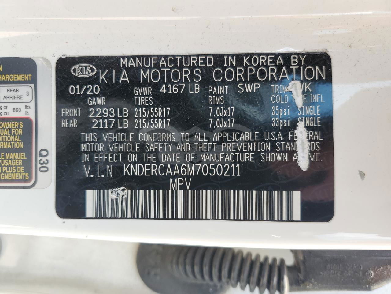 • VIN: KNDERCAA6M7050211