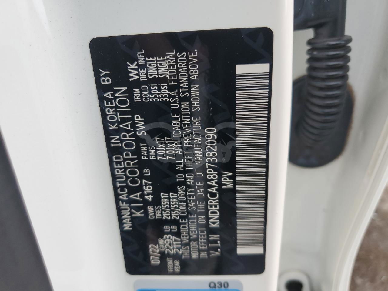 • VIN: KNDERCAA8P7382090
