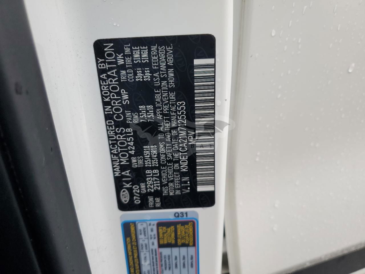 • VIN: KNDETCA21M7125553